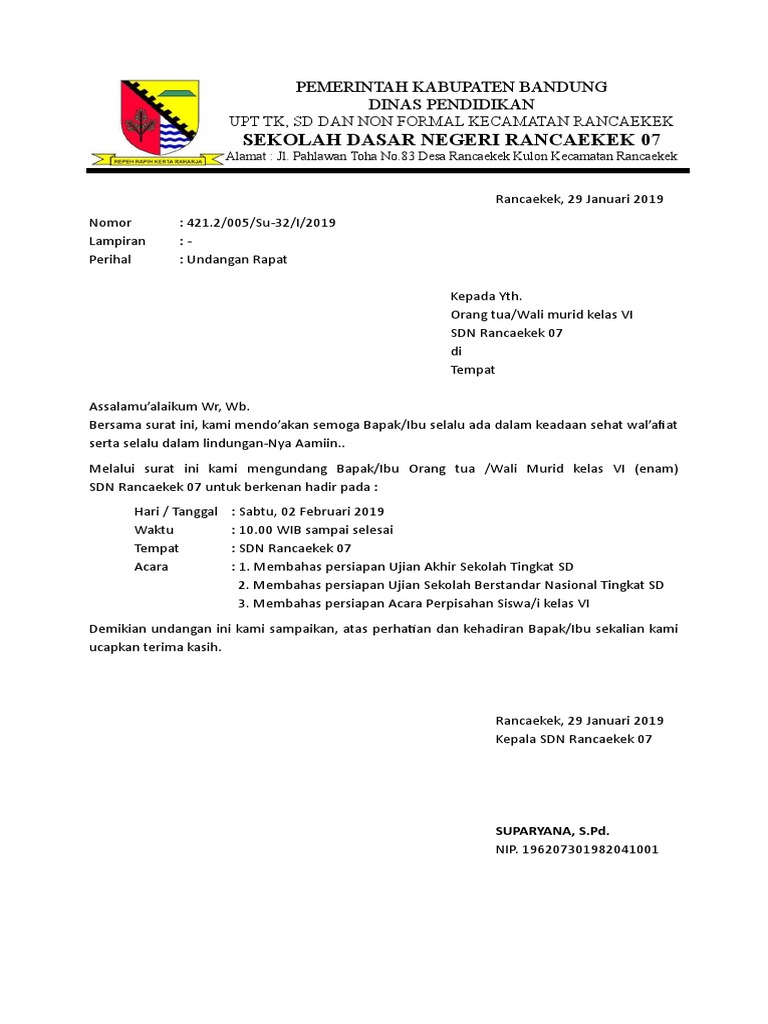 Contoh surat undangan rapat waliorang tua murid tk surat undangan adalah sebuah surat yang dikirim kepada seseorang agar orang yang dimaksud datang pada waktu undangan untuk wali murid kelas 6 sds kartika viii 2. Surat undangan rapat orangtua raniah nur sahar academia edu. Contoh surat undangan rapat wali murid. Untuk membuat surat undangan rapat, sebenarnya cukup mudah. Di sana dicantumkan data serta logo instansi.